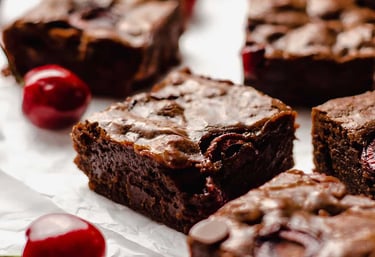 Irresistibles brownies elaborados con fruta natural y sin gluten, con chocolate del 80% de cacao para disfrutar.